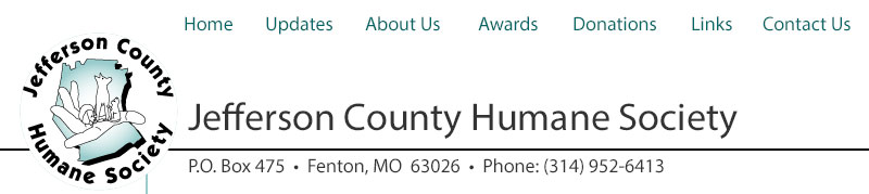 URGENTLY NEEDED!! LAND WITH A HOUSE or BUILDINGS -- especially with an older farmhouse -- is desperately needed to provide: Pet Hospice Care for senior pets and senior animals from pounds; A Safe, Loving Environment where special needs animals such as deaf / blind dogs or cats could be assessed and placed with qualified agencies or individuals; A Forever Home for vetted stray/feral cats who have nowhere to go We would LOVE to create a facility where companion animals at risk of being euthanized for reasons of age, special needs, or other reasons for being homeless, could be made comfortable and safe by caring volunteers. THIS DOG IS NOW SAFE AND WARM! This pup was finally brought in from rural Jefferson County after he had learned to trust us. "Red" had been on his own for nearly a year and had become very fearful of people and cars. He was either dumped or abandoned when his person moved or through another tragedy. Red chose to wait and walk. Though we had received calls, we couldn't track down a location until June when someone posted a picture and described the location. Still, he wasn't seen until two weeks later midnight, climbing out of a deep ravine. We posted flyers and went door to door to ensure he wasn't someone's pet. Our buddy is safe and warm, and enjoying the good life! Watch the video ... taken several days later. Read latest articles - IN THE NEWS RESCUED! Sweet Kitty "Tarzan" stranded a week and a half! (See pictures here!) Please visit "Links" to View Spay/Neuter Information Contact Missouri Department of Agriculture for copies of an applicant's file: Animal Care Facilities ProgramRequest copies of these documents which are available under the Missouri Sunshine Law: ACFA LicenseAn ACFA licensee MUST HAVE Missouri nonprofit status as issued the Missouri Secretary of State! To ensure adequate care of the animals, any individual or group accepting animals -- and/or placing them -- MUST BE ACFA-licensed! (The State of Missouri requests a very small fee for public information.) Non-profit status in the State of Missouri Contact Secretary of State at 573-751-4153 AND Website: http://sos.mo.gov/business/corporations "Corporations" Be sure to include all possible names under which the rescue group or individual may be operating 501c3 status Contact the IRS at a local office STL 314-612-4002; KC 816-966-2840. They may direct you to a national database of applications. AND Website: http://www.irs.gov/Charities-&-Non-Profits/Search-for-Charities "Search" A group's approval and/or application is public information. If not seen in the Search, call the IRS regarding date of an application. ![]() The Jefferson County Humane Society is a non-shelter organization that has handled over 300 cruelty-related incidents since 1996. Several remain open. Investigations are done by our volunteers. The JCHS is not paid by the County or any state or national organization. In addition, the JCHS has spayed/neutered over 300 dogs/cats since 1992. The majority of our on-site investigations work at night and on weekends/holidays is to educate irresponsible pet owners. At that point, the incident has not yet become "neglect," as defined by State law. We do everything possible to assist in making the incident adequate and humane for the animals, including ongoing monitoring. We have even provided large outside pens, doghouses and straw, longer leads, and heated water bowls, for those larger animals who do better outside than inside. Volunteers have access to our storage warehouse utilized for pet food, large water cannisters, bowls, toys, towels, blankets, humane traps, pet taxis of all sizes, small exercise pens, cat playhouses, and doghouses. The JCHS has testified in court so justice can prevail. A volunteer drove to Columbia, Missouri, to pay for and obtain a necropsy report for the Jefferson County Prosecuting Attorney's Office. The Prosecutor's Office, the University of Missouri, and the JCHS worked as a team toward a common goal of justice. See LINKS for definitions of "animal neglect" and "animal abuse." The Jefferson County Humane Society was offficially formed in January 1996 following our response to an abandoned animal in distress. At the time, there were no government agencies or volunteer organizations to come to the aid of a severely neglected family pet. Since that night, our volunteers have been able to respond to reports of alleged abuse and neglect when animal control is closed. We work side-by-side with law enforcement on numerous abuse and neglect cases. In addition, our volunteers have testified in courts on behalf of the animals in Jefferson County. It is our purpose to follow through so that justice is served. IMPORTANT NOTE: The JCHS does not randomly pick up or rescue dogs. However, we will be glad to offer assistance by referring you to organizations whose primary purpose is to rescue, foster, and place. Our goal is to foster dogs that have been ABANDONED/CONFINED (tethered or in a yard) AND are showing signs of negect/abuse. Most often, utility workers shutting off power notify me. We also foster dogs that must be held for court cases (minimum 30 days). JCHS volunteers contact the Jefferson County Sheriff's Department or Missouri Highway Patrol to monitor the situation on any and all dogs that must be seized. This is done for our safety. Typically, this is one or two dogs and/or puppies. Most rescues are done under exigent circumstances; others require a court order. The HSMO handles horse and large-scale cat/dog rescues. To report a concern or complaint, please initially notify Animal Control at (636) 797-5577. Our primary focus is to assist law enforcement in determining the action to be taken on-site. Funds are desperately needed for emergency veterinary care! Contact person: Jean Woolery, 314-952-6413 Donations directly benefit spay/neuter assistance for lower income families, and veterinary care for abused, neglected, abandoned animals -- as defined in Revised Statutes o