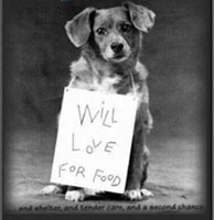 I was excited about the car ride until we arrived at the animal shelter. It smelled of dogs and cats, of fear, of hopelessness. You filled out the paperwork and said "I know you will find a good home for her." They shrugged and gave you a pained look. They understand the realities facing a middle-aged dog, even one with "papers." You had to pry your son's fingers loose from my collar as he screamed "No, Daddy! Please don't let them take my dog!" And I worried for him, and what lessons you had just taught him about friendship and loyalty, about love and responsibility, and about respect for all life. You gave me a good-bye pat on the head, avoided my eyes, and politely refused to take my collar and leash with you. You had a deadline to meet and now I have one, too. After you left, the two nice ladies said you probably knew about your upcoming move months ago and made no attempt to find me another good home. They shook their heads and asked, "How could you?"